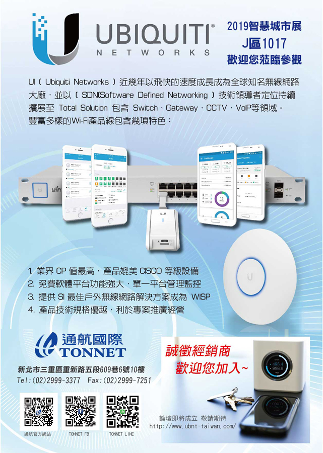 通航國際T1代理 ⌜全球IT網通領導品牌UBNT Unifi系列⌟ 並將在台北智慧城市展同步亮相 歡迎各界先進一同蒞臨參觀